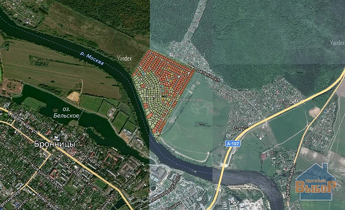 Полтора километра собственной береговой линии Москвы-реки, электричество, ограждение, уличное освещение, спортивная площадка, детская площадка, место для пикника, пляж, видеонаблюдение, большой лес прямо от границы поселка, расположение в черте города Бронницы с развитой инфраструктурой, всего в 45 км. от МКАД по Новорязанскому шоссе.
